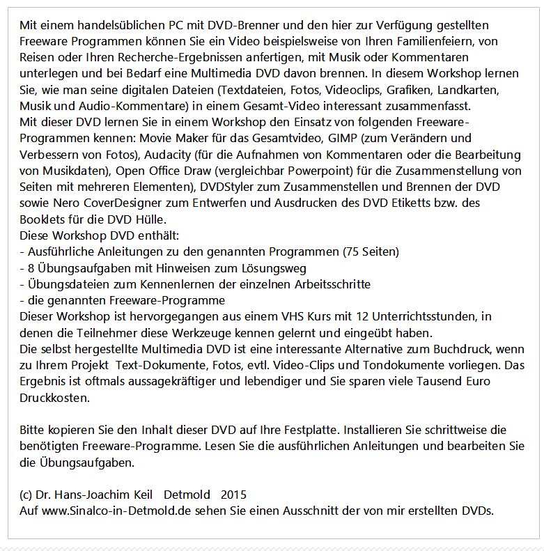 selbständig den Videoschnitt und die Herstellung einer Multimedia-DVD erlernen können.